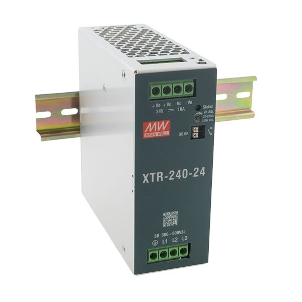 Napajanje za DIN šinu Mean Well XTR-240-12 serije XTR od 240W, ulaznog napona od 320-600VAC, izlaznog napona od 24V i maksimalne struje do 20A. Garancija 3 godine.